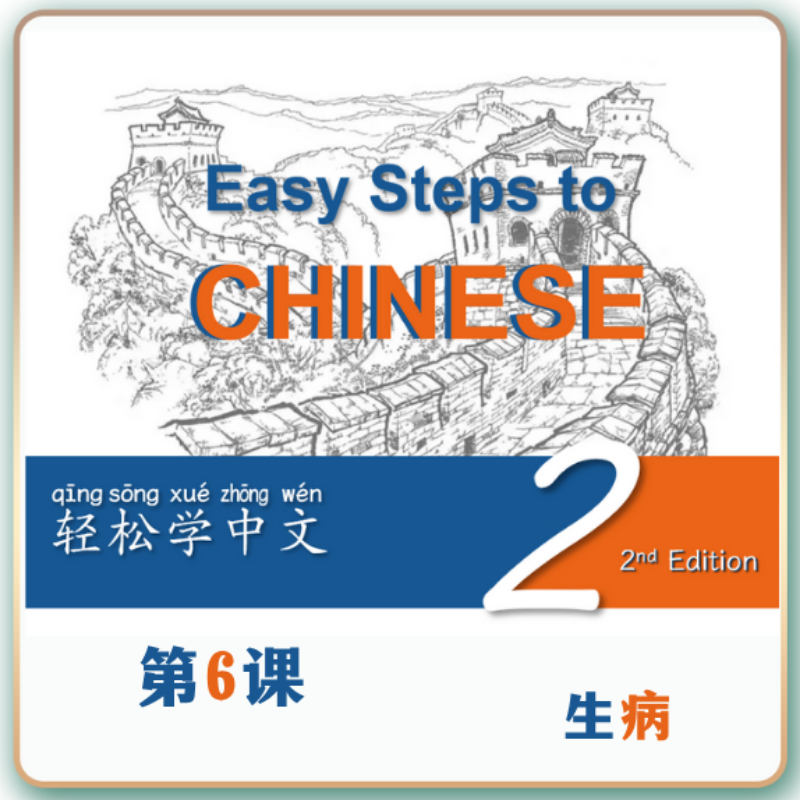 第二版-轻松学中文-青少版-第二册第6课生病,2课时100分钟-1小时PPT课件,共38页PPT,包括教材和练习课件,合理分配课时,友好教学提示支持(见PPT备注),朴实又趣味满满的教学课件。拿来即用,省时间省精力。